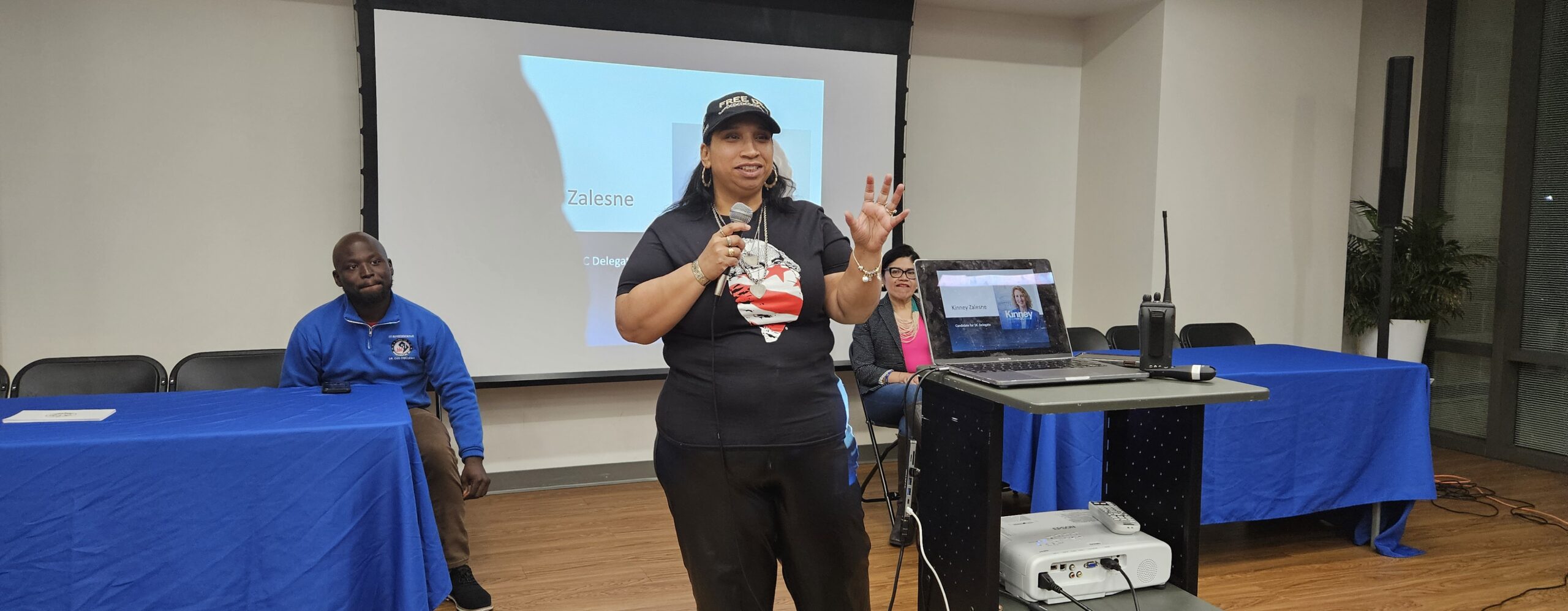 Activist Ana Rodriguez hosted a panel discussion with community leaders and candidates seeking political office in the DC Democratic Primary. The activist-led community dialogue included topics such as education, immigration, and DC Statehood. The panel discussion was followed by a meet-and-greet with Ms. Kinney Zalesne, a candidate seeking to replace DC Congresswoman Eleanor Holmes Norton in Congress. Late last year, Congresswoman Norton announced she would seek another term in Congress, but that has not stopped many people from running for the seat the Congresswoman has occupied since 1990. While Ms. Zalesne says she has lived in DC for decades, she is a relatively unknown figure in DC politics. Other Panelists included Ms. Jackie Reyes-Yanes, a former Mayor Bowser appointee, and now candidate for the Ward 1 seat currently occupied by Brianne Nadeau, who has said she will not be seeking an additional term. Another panelist was Dr. Oye Owolewa, the current US (Shadow) Representative who is running for an At-large seat on the DC Council. Other panelists were: Rev. Anthony J. Motley and Mustafa Tariq. The moderator was Ms. Yvette Selby. The event was held at the DC Bilingual Public Charter School in Ward 5.